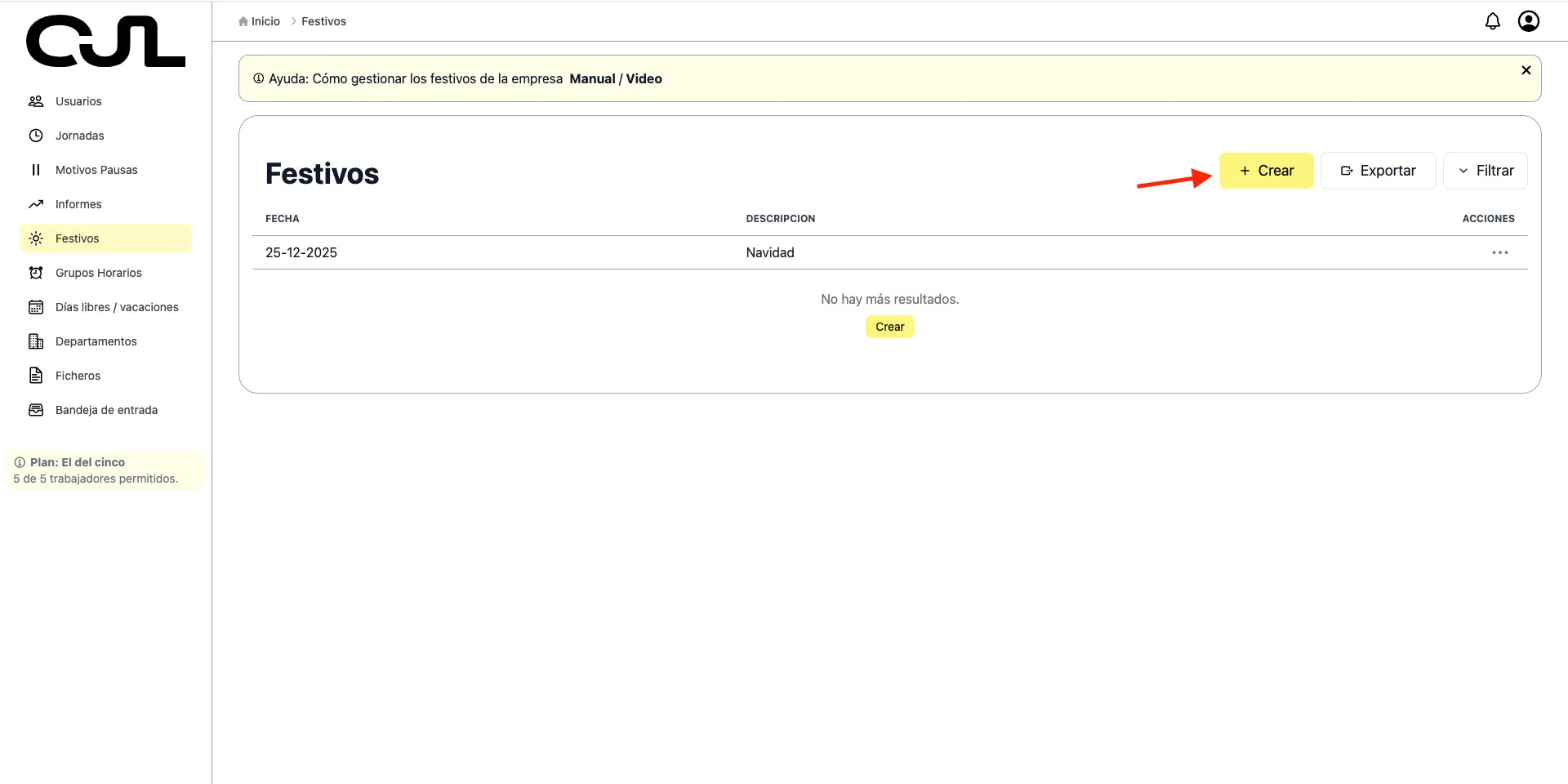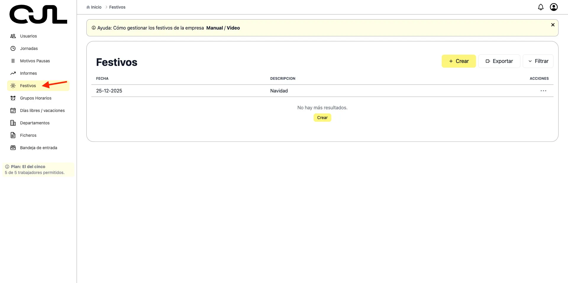 Ten en cuenta que en los días marcados como festivos de empresa, el trabajador no podrá fichar.